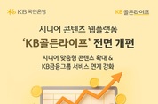 [서울타임즈뉴스 = 최남주 기자] KB국민은행(은행장 이환주)이 시니어 고객을 위한 종합 콘텐츠 웹플랫폼 ‘KB골든라이프’를 전면 개편해 금융·비금융 서비스를 통합 제공하는 시니어 특화 플랫폼으로 강화했다. 기존 ‘KB골든라이프X’를 ‘KB골든라이프’로 리브랜딩하고, 상속·증여·연금·절세·부동산 등 금융 정보부터 문화·생활·건강 등 비금융 콘텐츠까지 아우르는 종합 시니어 정보 플랫폼으로 확장했다. 홈페이지내 화상 상담 서비스와 ‘KB골든라이프센터’ 방문 예약 기능을 연계해 온·오프라인 기반의 시니어 케어 서비스도 강화했다. 특히 KB라이프생명의 ‘KB요양돌봄컨설팅’을 비롯한 각 계열사의 시니어 특화 콘텐츠를 한곳에서 제공함으로써 금융 접근성과 이용 편의성을 크게 높였다. 또한 시니어 고객 맞춤형 콘텐츠를 확대하고 UI·UX를 직관적으로 개편해 가독성을 개선했다. KB금융 전문가들의 노하우를 담은 금융 칼럼과 빅데이터 기반 ‘골든라이프 뉴스레터’도 정기 제공해 시니어 고객에게 실질적인 생활 가이드와 금융 인사이트를 전달할 계획이다. KB국민은행 관계자는 “KB골든라이프 개편으로 시니어 고객이 금융과 생활 서비스를 한 번에 이용할 수 있게 됐다”며 “행복하고 안