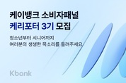 [서울타임즈뉴스 = 최남주 기자] 케이뱅크(은행장 최우형)가 금융소비자 목소리를 케이뱅크에 반영하기 위한 소비자패널 ‘케리포터’ 3기를 모집 중이라고 26일 밝혔다. ‘케리포터’는 케이뱅크(Kbank)와 리포터(Reporter)의 합성어로, 금융 소비자의 경험을 바탕으로 아이디어와 개선 과제를 발굴하는 소비자패널 프로그램이다. △새로운 금융 상품 및 서비스 등 아이디어 제안 △금융 소비자보호 관련 활동 △UX/UI 개선점 도출 등 다양한 활동을 온·오프라인으로 진행한다. 이번 케리포터 3기는 기존과 달리 선택 참여형 방식으로 운영된다. 정기적으로 정해진 일정에 과제를 수행하던 방식에서 벗어나 과제의 주제와 성격에 따라 참여자가 자신의 관심사와 일정에 맞는 활동을 선택해 참여할 수 있도록 자율성을 강화했다. 아울러 고객군 특성에 기반한 그룹화 운영을 통해 소비자패널의 대표성과 전문성을 한층 높일 계획이다. 케리포터 3기 모집은 2월 11일까지 진행하며 최대 100명을 선발 예정이다. 활동 기간은 2월 23일부터 내년 2월 11일까지다. 금융소비자라면 누구나 지원 가능하다. 특히 국내에 거주하고 있는 외국인, 개인사업 경험자, 미성년 자녀를 양육하는 부모, 청소