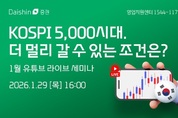 [서울타임즈뉴스 = 최남주 기자] 대신증권이 국내 증시의 중장기 흐름을 점검하는 온라인 라이브 세미나를 연다. 대신증권은 오는 29일 오후 4시 유튜브를 통해 ‘코스피 5000시대, 더 멀리 갈 수 있는 조건은?’을 주제로 라이브 세미나를 진행한다고 27일 밝혔다. 이번 세미나는 국내 증시가 장중 기준으로 코스피 5000선을 돌파하며 ‘오천피 시대’에 진입한 가운데, 추가 상승 여력과 이를 뒷받침할 요인을 점검하기 위해 마련됐다. 강연은 대신증권 리서치센터 이경민 연구원이 맡는다. 이 연구원은 국내 증시 밸류에이션, 외국인 수급, 정책 변수 등 국내 증시를 둘러싼 주요 요인들을 분석하고, 중장기 관점에서 지속적인 상승 흐름을 이어가기 위한 환경과 과제를 중심으로 설명할 예정이다. 김광민 대신증권 영업지원센터장은 “연초부터 국내증시가 의미 있는 수준까지 상승하면서 중장기 방향성과 지속가능성에 대한 관심이 높아지고 있다”며 “이번 세미나가 투자자들의 합리적인 투자 판단에 도움이 되길 기대한다”고 말했다.
