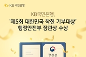 [서울타임즈뉴스 = 최남주 기자] KB국민은행(은행장 이환주)은 8일 열린 ‘제5회 대한민국 착한 기부대상’ 시상식에서 행정안전부 장관 표창을 받았다고 9일 밝혔다. 행정안전부가 주최하고 한국자선단체협의회가 주관하는 이번 시상은 우리 사회의 나눔과 기부 확산에 기여한 기업과 개인을 대상으로 2021년부터 매년 시상하고 있다. KB국민은행은 오랜 기간 사회적 책임을 실천해온 점을 높이 평가받아 수상자로 선정됐다. KB국민은행은 2011년부터 15년간 이어온 ‘전통시장 사랑 나눔’ 행사를 통해 명절마다 전통시장에서 식료품을 구매해 지역 사회 복지시설과 어려운 이웃에게 전달했다. KB국민은행은 그동안 약 23만2000가구에 혜택을 제공하는 등 지역 상생과 기부문화 확산에 기여했다. 또 대표 사회공헌 사업인 ‘KB Dream Wave 2030’을 통해 2006년부터 청소년 약 20만명에게 학습·진로·인프라 중심의 맞춤형 성장 지원 프로그램을 제공하며 교육격차 해소와 미래 인재 양성에 앞장서고 있다. KB금융그룹 양종희 회장은 창립 17주년 기념사에서 “더 많은 분들에게 희망의 불씨를 밝히는 KB만의 포용금융을 강화해야 한다”고 강조한 바 있다. KB국민은행 관계자는