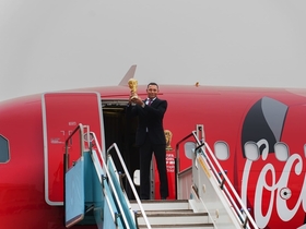 코카-콜라 특별 전세기로 도착한 ‘금빛 상징’, FIFA 월드컵 2026 열기 예열